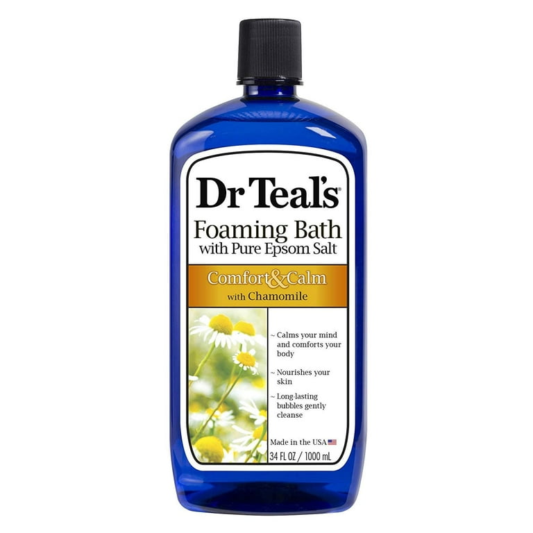 Dr. Teal's chamomile foaming bath transforms an ordinary bath into a relaxing spa with luxurious essential oils to soothe the senses, relax tense muscles and provide relief from stress.