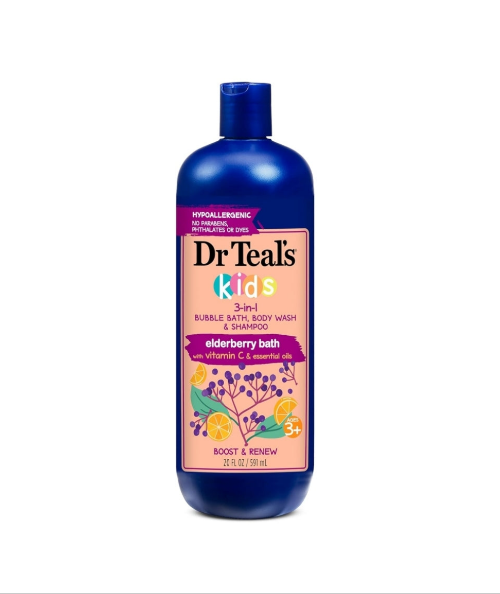 DR TEAL'S KIDS 3-IN-1 ELDERBERRY BATH: BUBBLE BATH, BODY WASH & SHAMPOO