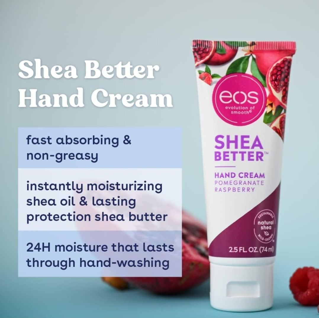 Wave goodbye to dry hands with EOS shea butter hand cream. eos Shea Better hand lotion products are made with natural shea butter and oil to soothe, soften, and hydrate your skin. Hand care has never been easier - or smelled better.