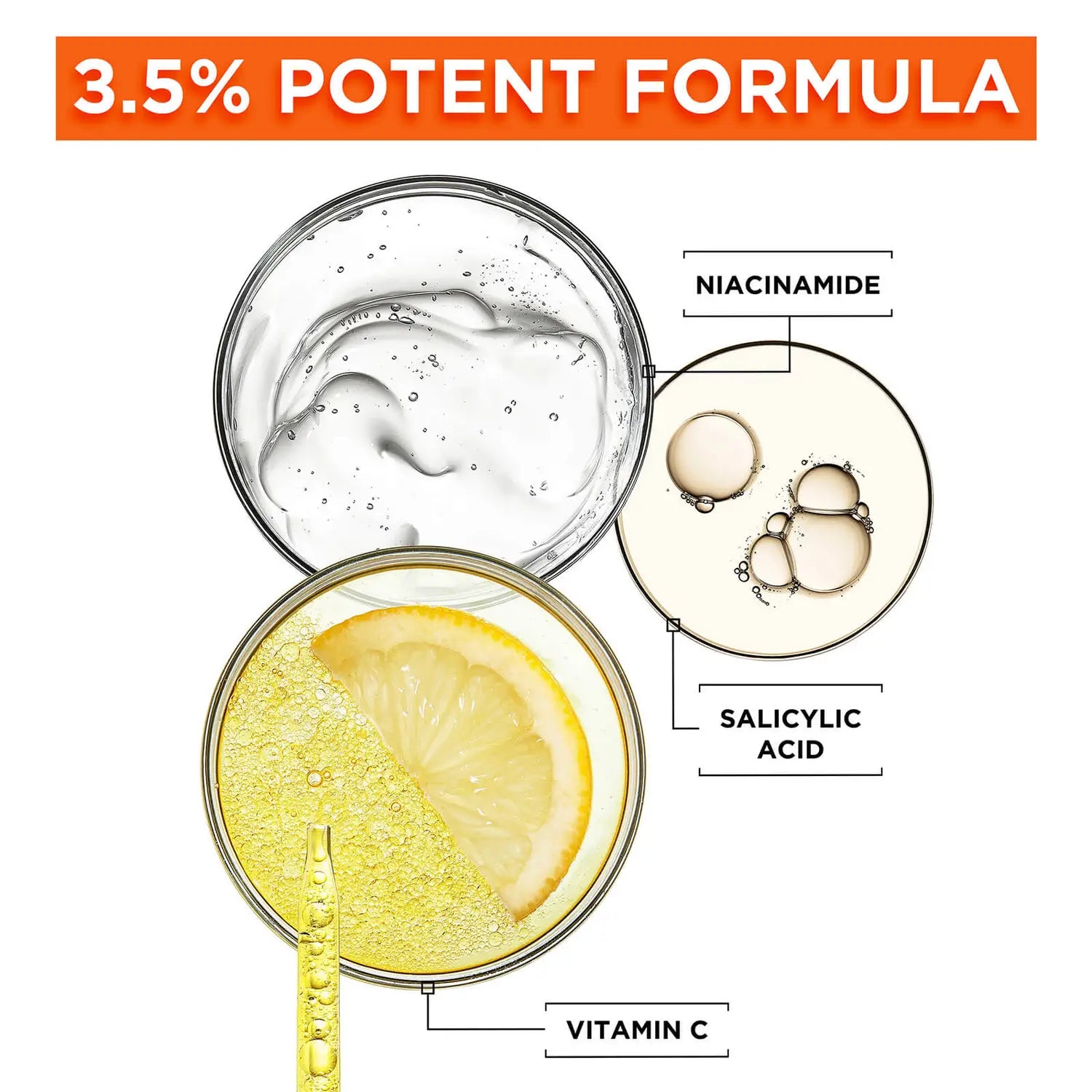 GARNIER 3.5% VITAMIN C, NIACINAMIDE, SALICYLIC ACID, BRIGHTENING AND ANTI DARK SPOT SERUM 30ML