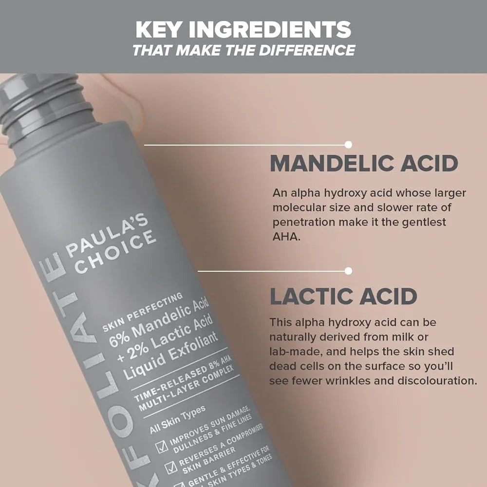 PAULA'S CHOICE 6% MANDELIC ACID + 2% LACTIC ACID LIQUID EXFOLIANT
