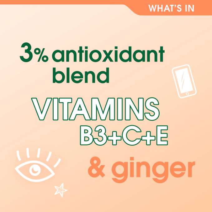 This hydrating eye gel is infused with 5% hydrating actives, 3% antioxidants, vitamins B3+C+E, ginger, and minerals. The presence of alfafa in this eye gel gives your skin antioxidant protection to fight against blue light.
