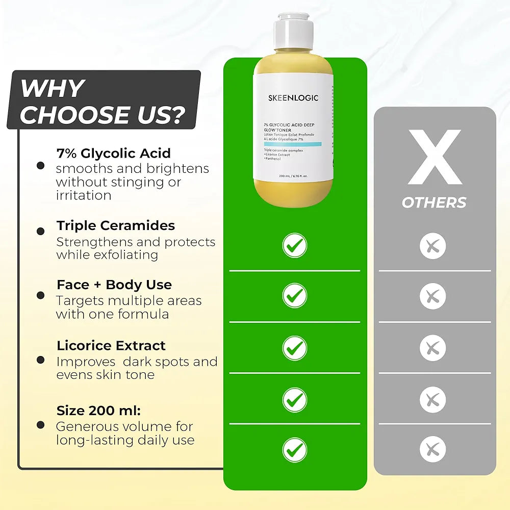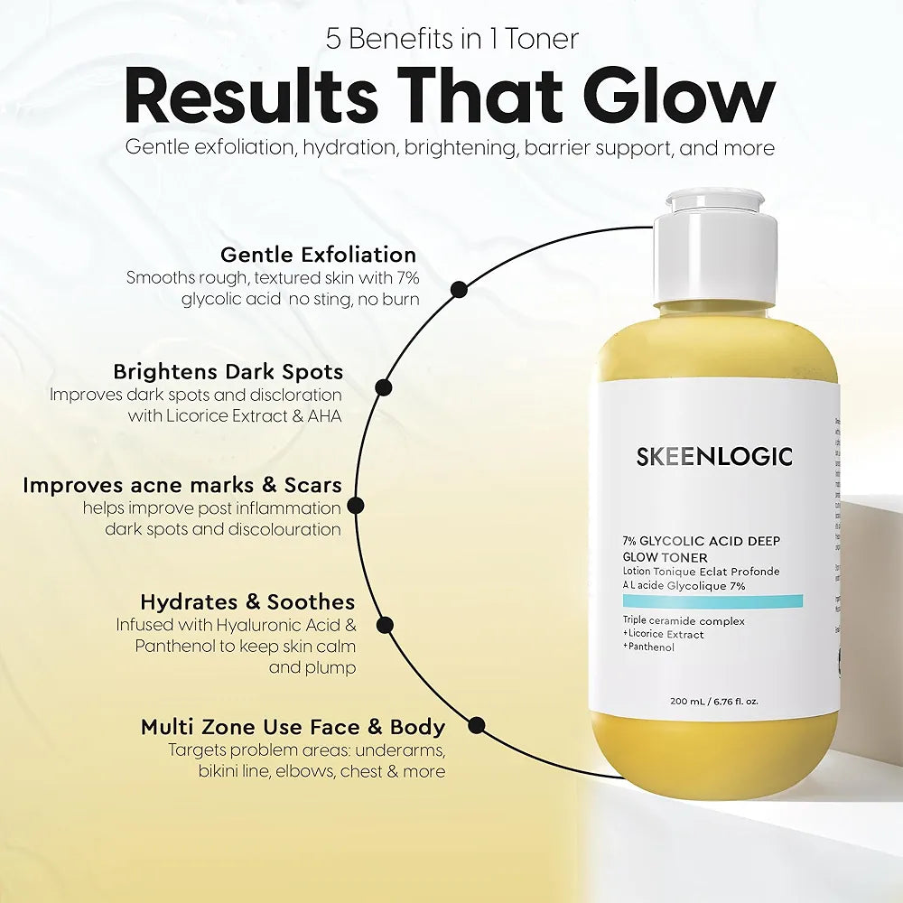 SKEENLOGIC 7% GLYCOLIC ACID DEEP GLOW TONER - 200ML