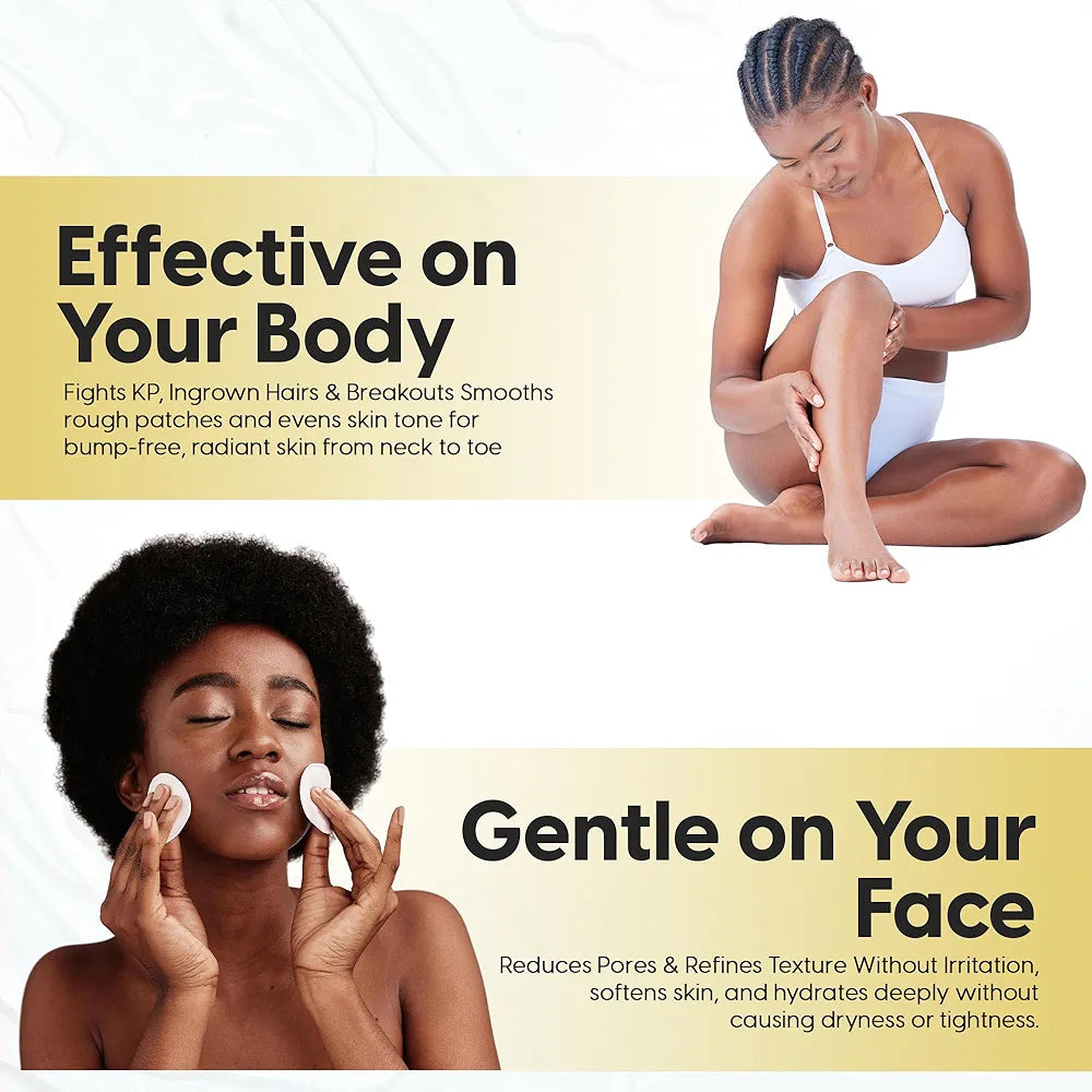 MULTI-ZONE FACE & BODY EXFOLIANT- Targets rough, discolored areas like underarms, bikini line, chest, back, elbows, and knees—ideal for keratosis pilaris, body acne, and dull patches.