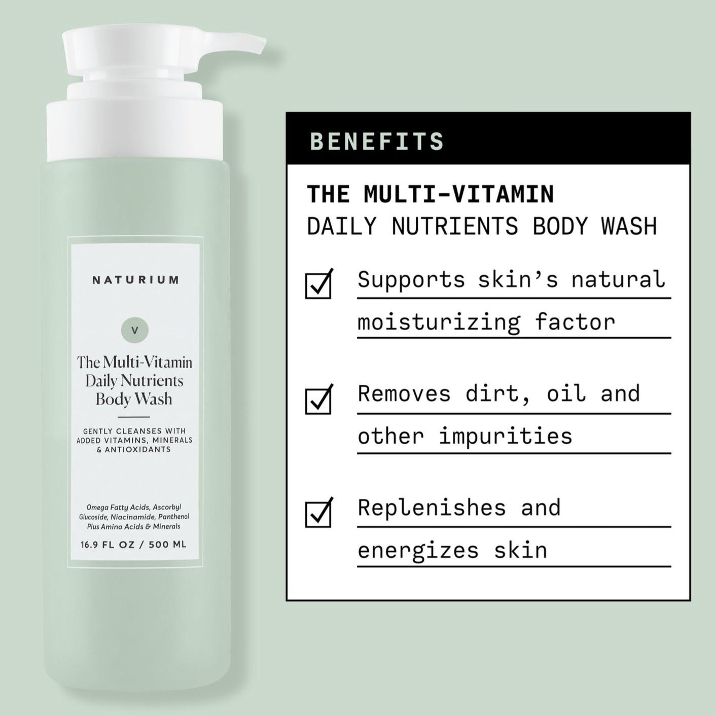 An everyday body wash formulated with essential nutrients for healthier looking skin.