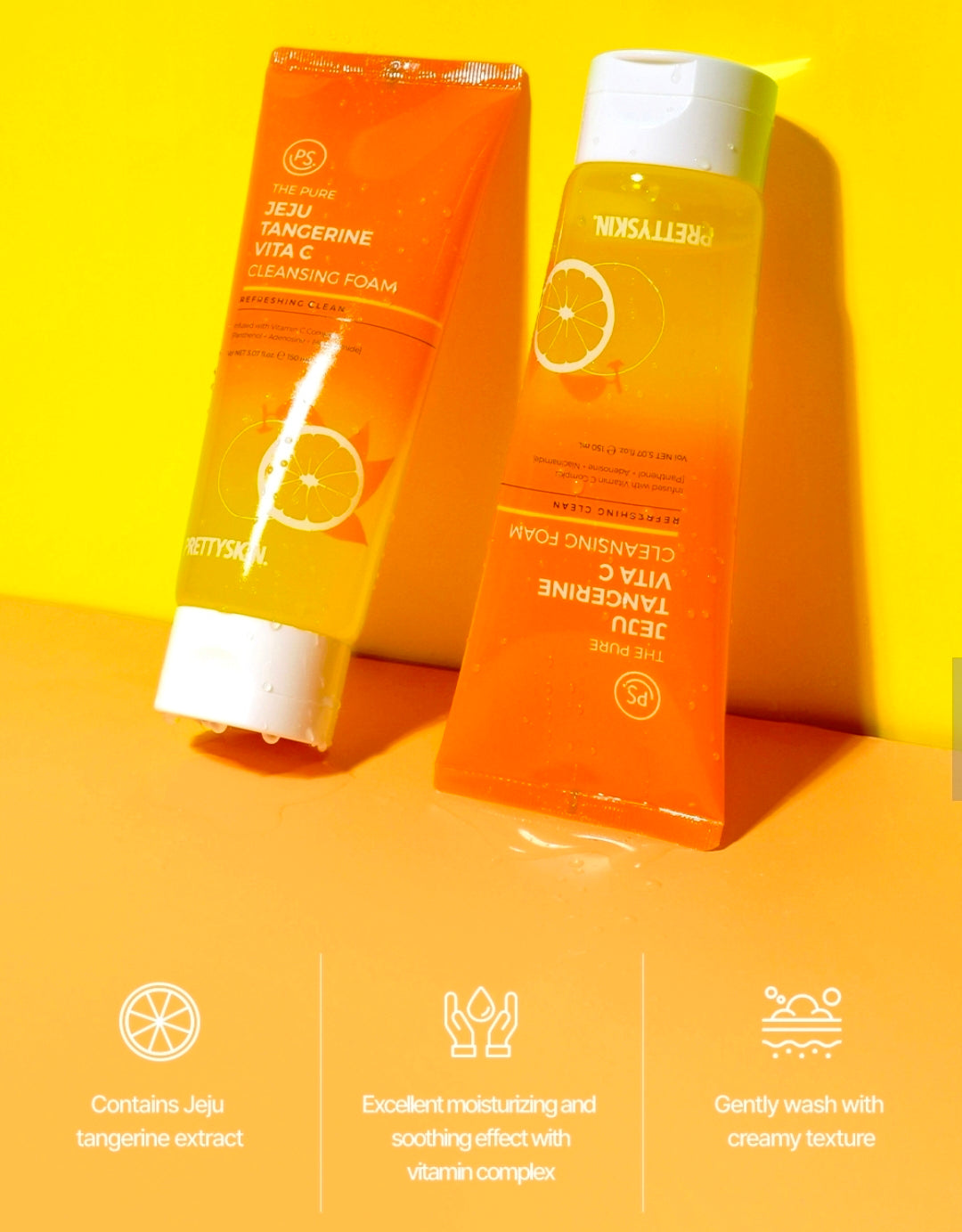 Experience a luxurious cleansing with the indulgent creaminess of Prettyskin Jeju Tangerine Cleansing Foam, gently removing impurities while pampering your skin with a silky touch.