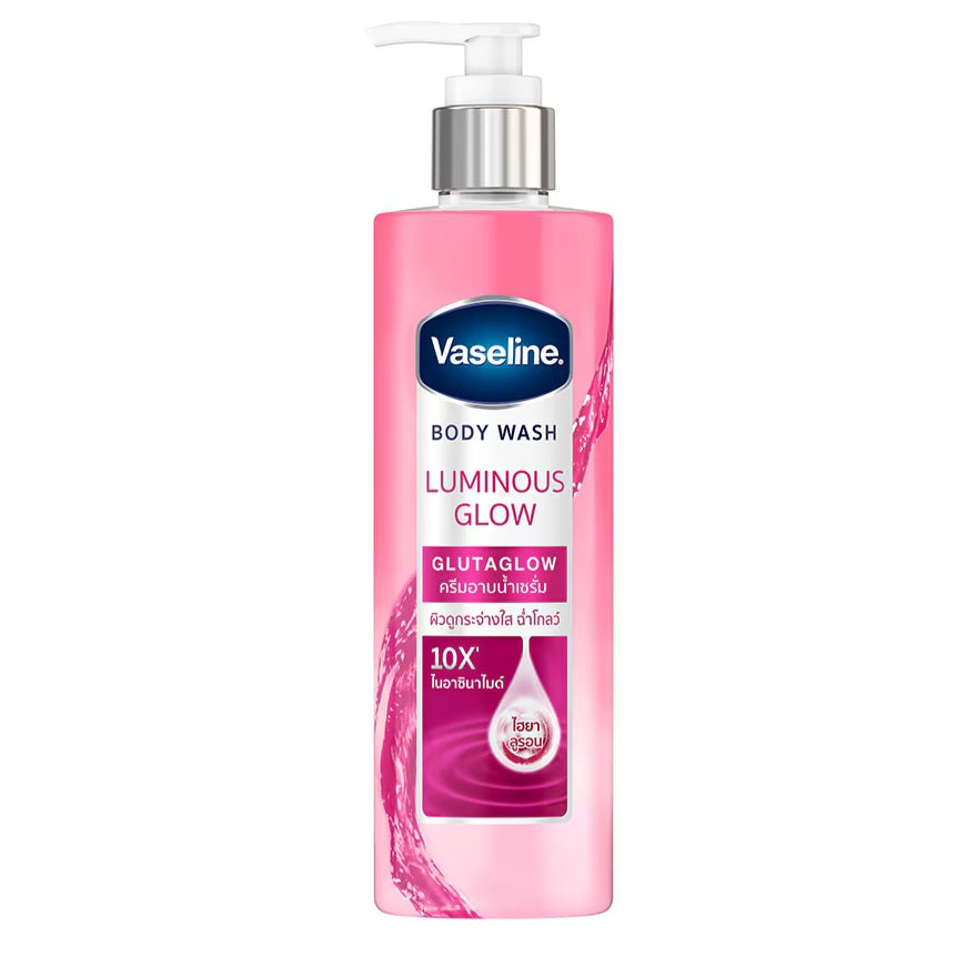 10X Niacinamide, Hyaluronic Acid - Hyaluronic Acid helps hydrate and plump the skin. Indulge now lather your body by rubbing before washing off. Vaseline Body Wash Luminous Glow Glutaglow GlutaGlowTM Technology with 10X Niacinamide for radiant skin, even skin tone, and a glowing appearance. Enriched with Glutathione for Skin Nourishment.